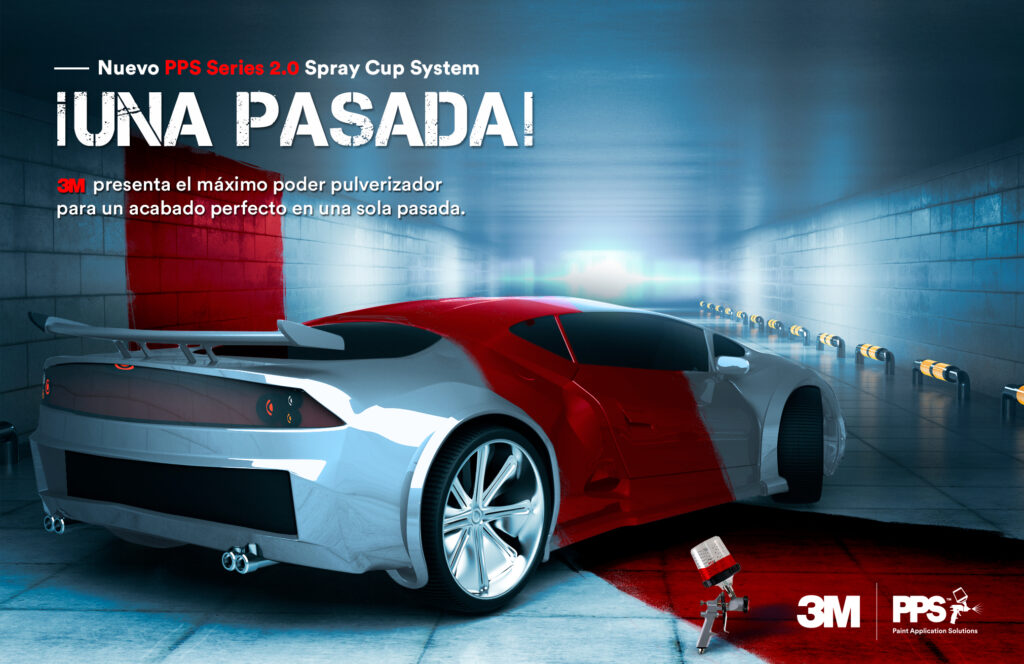 Para publicitar la nueva versión del pulverizador PPS Series 2.0, la multinacional 3M necesitaba una campaña de lanzamiento que lo diera a conocer. PPS es un sistema de pintura completo que permite al pintor medir, mezclar, filtrar y pulverizar materiales de pintura, por lo que es usado fundamentalmente en talleres de automóviles.