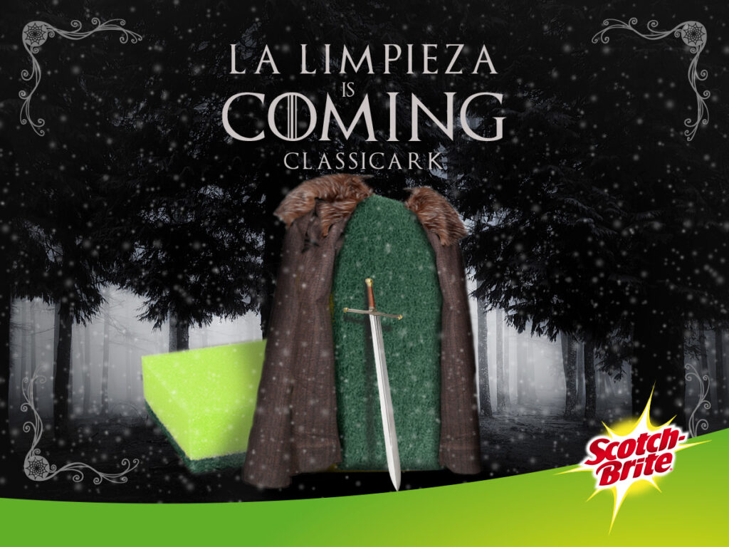 Scotch-Brite aprovechando el tirón que estaba teniendo la última temporada de la serie Juego de Tronos quiso dinamizar sus perfiles en redes sociales y ofertar diferentes regalos para aquellos seguidores que se mostraran fieles a la marca. Nos dio libertad creativa a la hora de realizar las publicaciones para seguir el tono desenfadado de la marca y generar engagement.